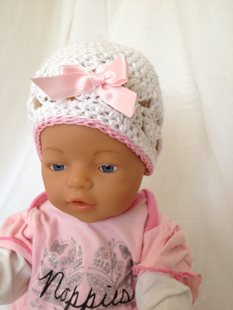 Superlief mutsje met strikje en een klein roze randje